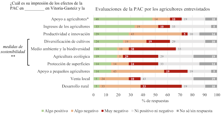 En Álava, el 71 % de los agricultores entrevistados vio carencias en las medidas de sostenibilidad de la PAC porque consideró algunas de las prácticas impuestas por la PAC insuficientes, ineficaces o hasta carentes de sentido.