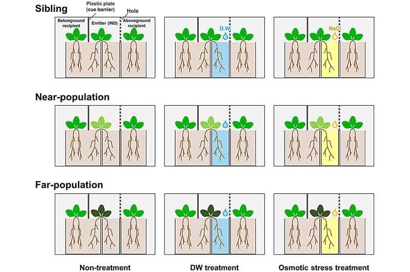 En un estudio publicado en Plant Signaling & Behavior , los científicos quisieron comprender cómo las plantas de Plantago asiatica utilizan la comunicación tanto aérea como subterránea para responder de manera diferencial a las señales de estrés salino percibidas de vecinas con identidades genéticas variables.