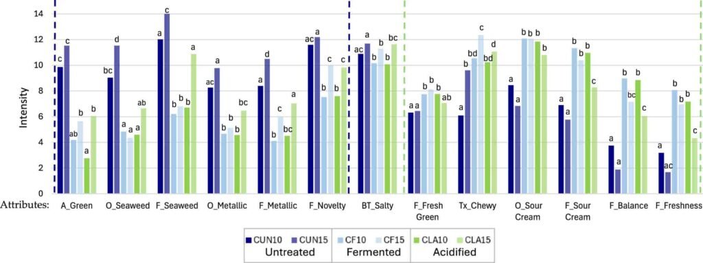 Las algas fermentadas también dieron como resultado una textura más firme y estable, particularmente en el queso crema, que se percibió como más «masticable» y menos líquido que las otras variantes.
