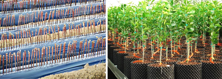 La vid y los cítricos son dos claros ejemplos de cultivos ligados muy estrechamente a la técnica del injerto (figura 2). En el siglo XIX, una plaga de un hasta entonces desconocido insecto procedente de América, la filoxera (Daktulosphaira vitifoliae), arrasó los viñedos de Europa, incluidos los de España.